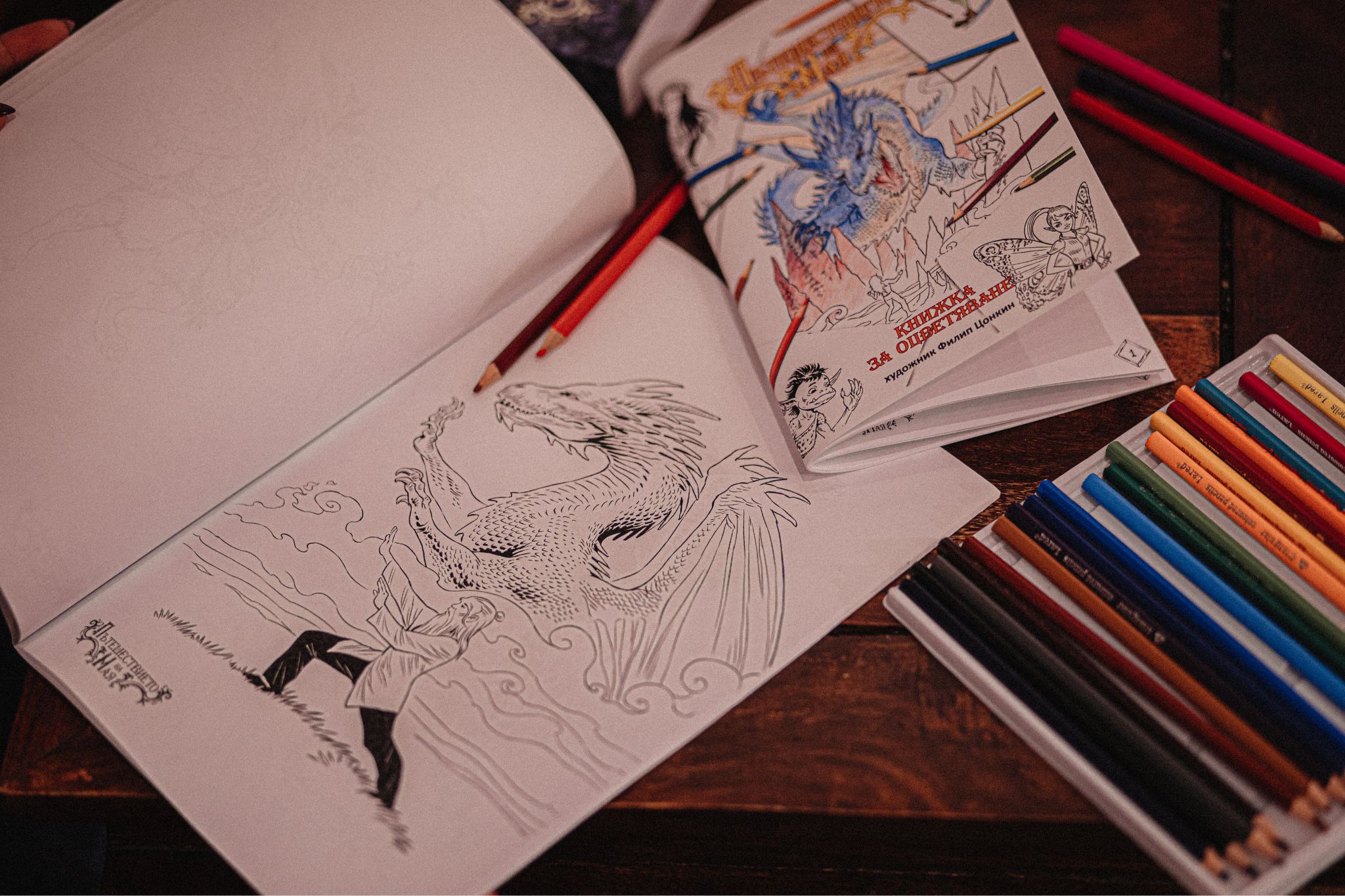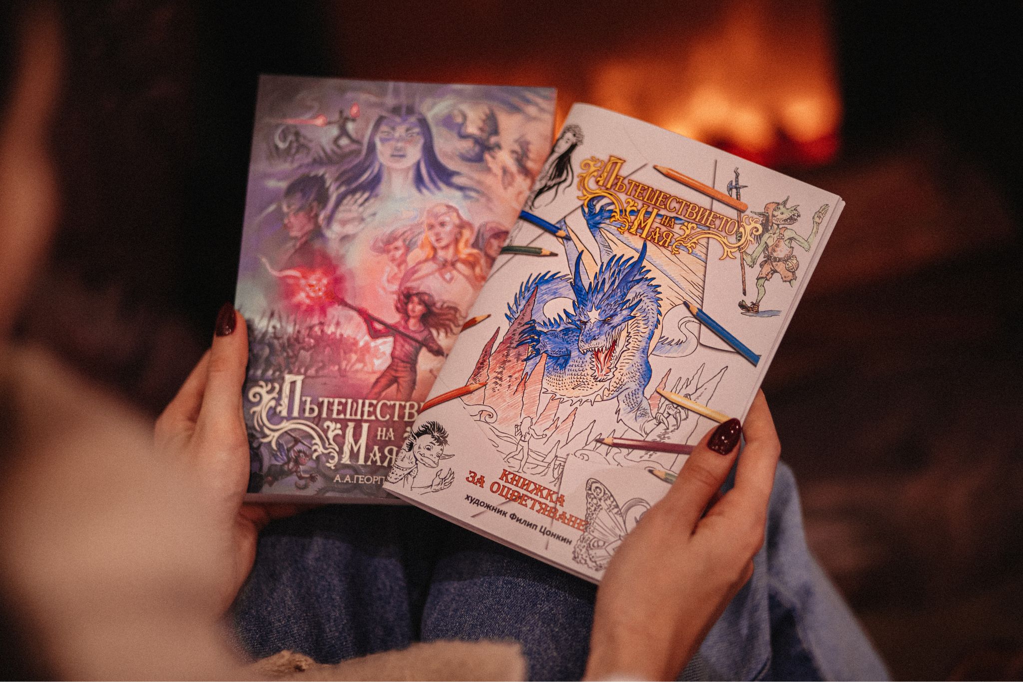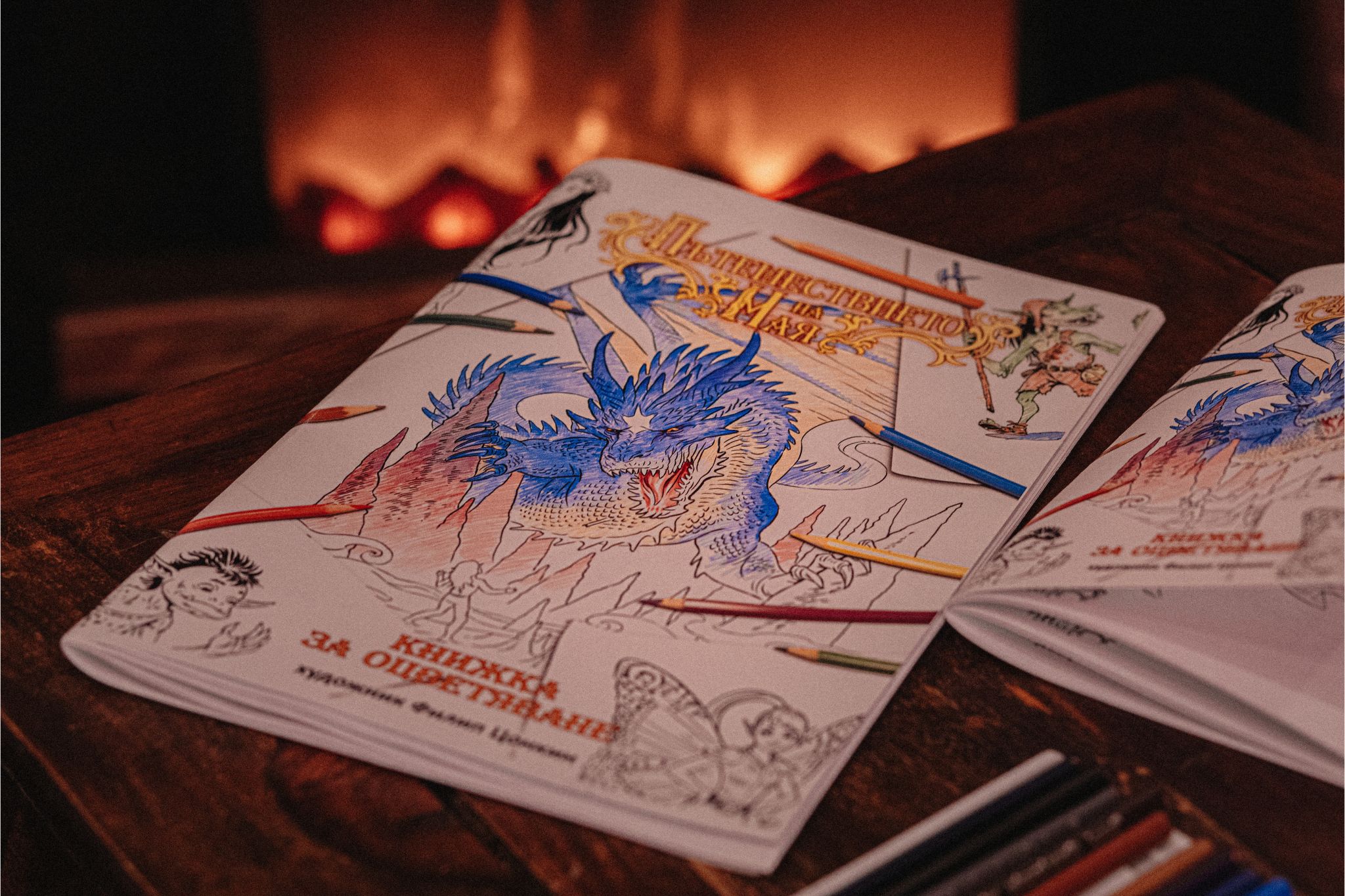 Поръчай комплект фентъзи роман + книжка за оцветяване с формат А4 на промоционална цена. Пътешествай заедно със смелата Мая през магични светове, а после запълни чернобелите рисунки с багри, както ти си представяш, че биха изглеждали героите. Потопи се в магията на феи, гоблини, самодиви, магьосници и дракони.